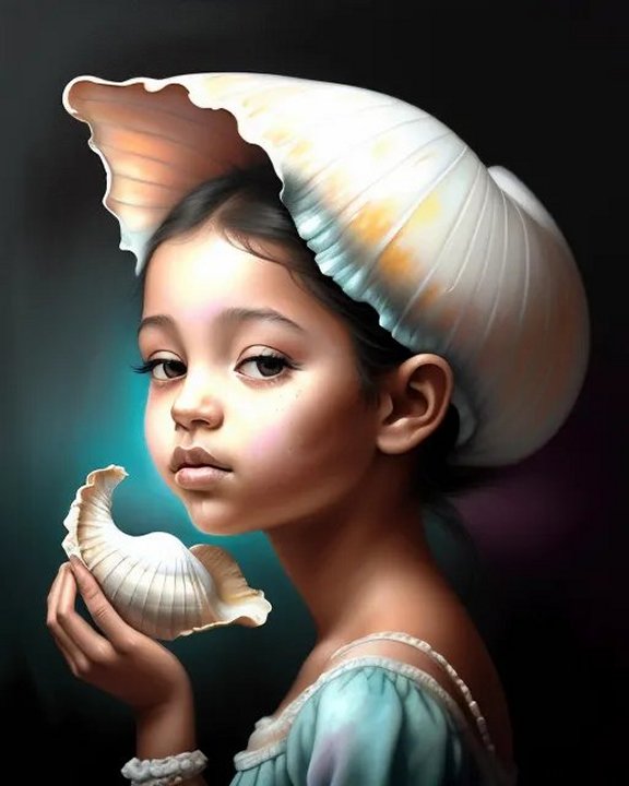 The Seashell Girl in the style of Edgar Leeteg 8x10 72dpi